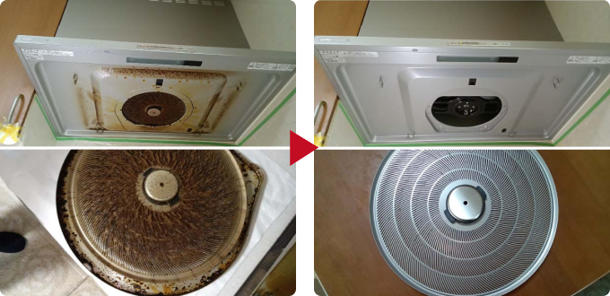 ご家庭のお掃除では届かない内部の汚れを、分解・高圧洗浄できれいに取り除きます。