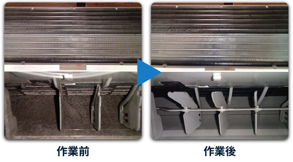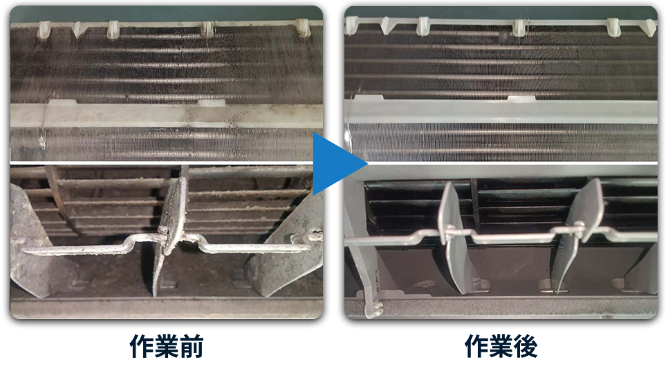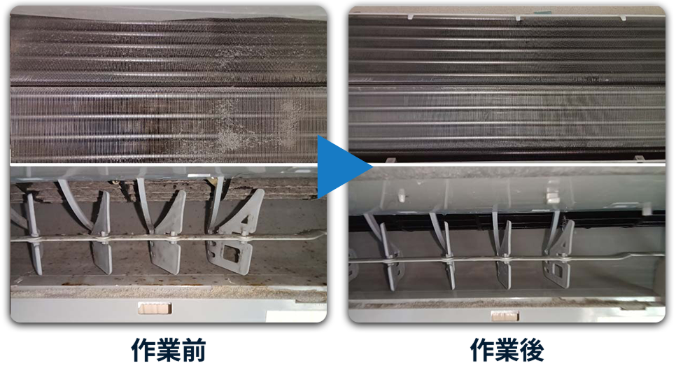 例1)エアコンクリーニング後に送風口を確認したところ、明らかに汚れが取れていなかった。