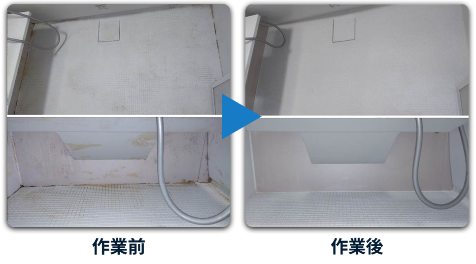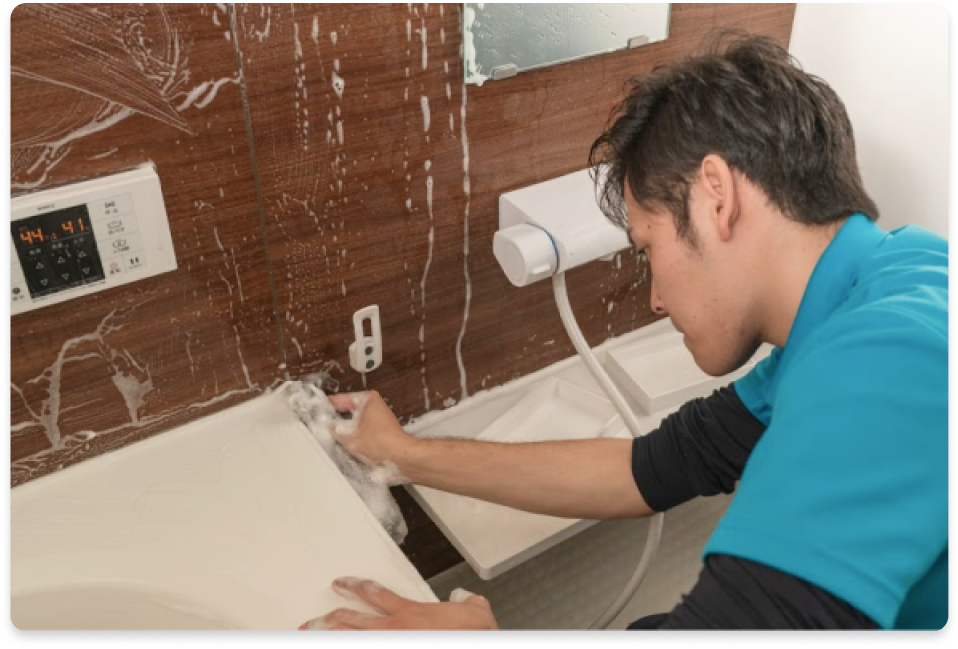 湿気でカビや雑菌が繁殖しやすい浴室。湯垢や石けんカスなど落ちにくい汚れも、プロの技術で浴槽から壁・床・天井まで徹底洗浄します。