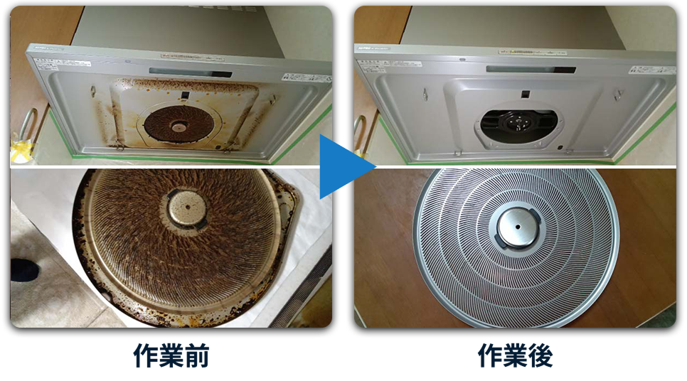 例2)換気扇クリーニング後にフィルター部分を確認したところ、明らかに汚れが取れていなかった。