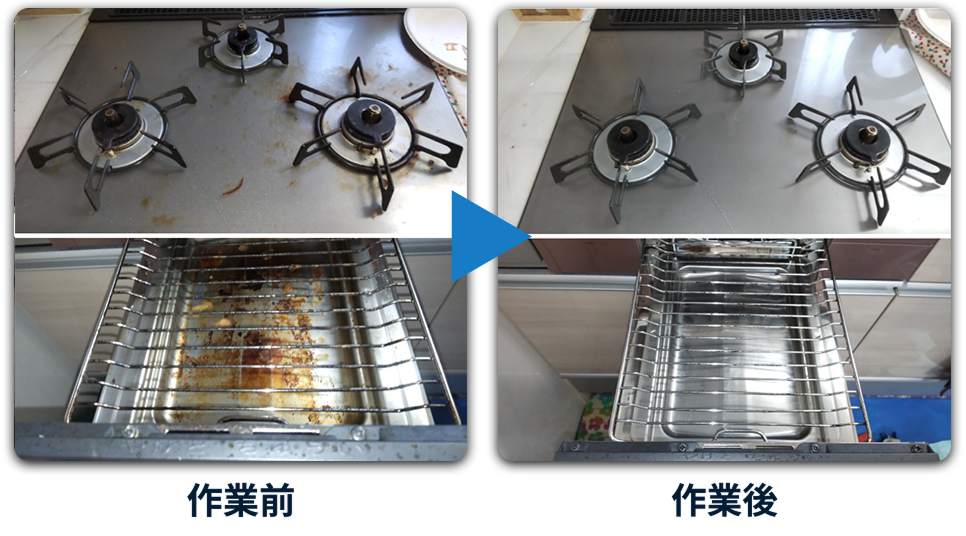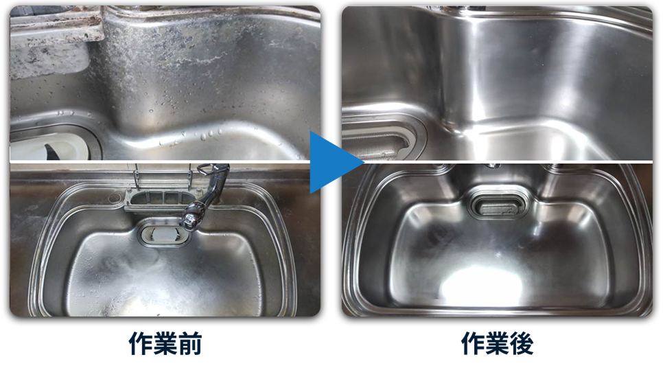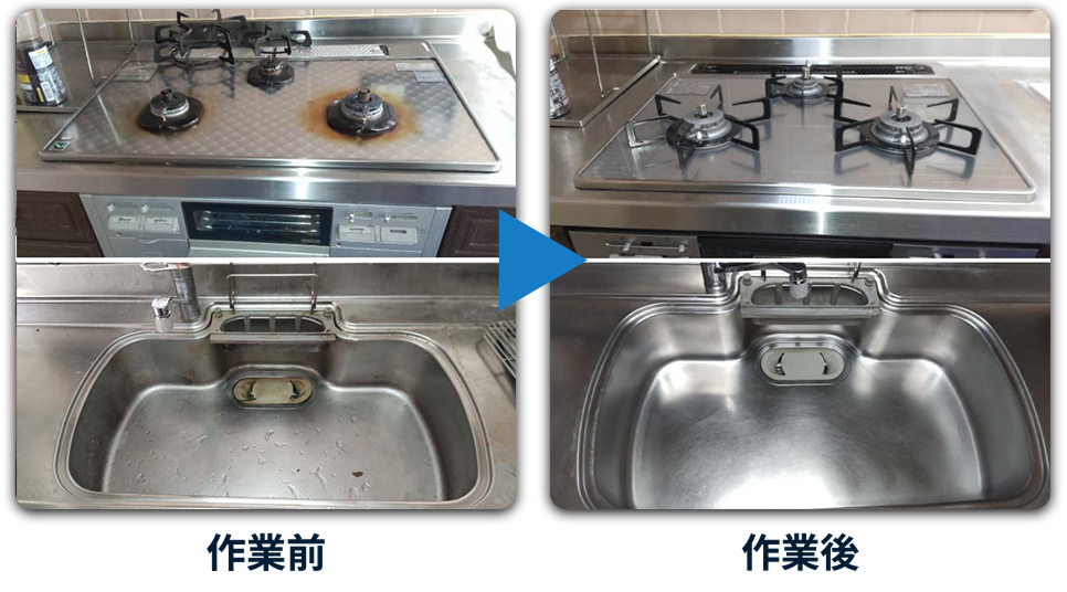 コンロの油汚れやシンクの水垢、排水管のヌメリまで徹底洗浄。汚れに合わせた洗剤と器材で、戸棚や壁面までピカピカに仕上げます。
