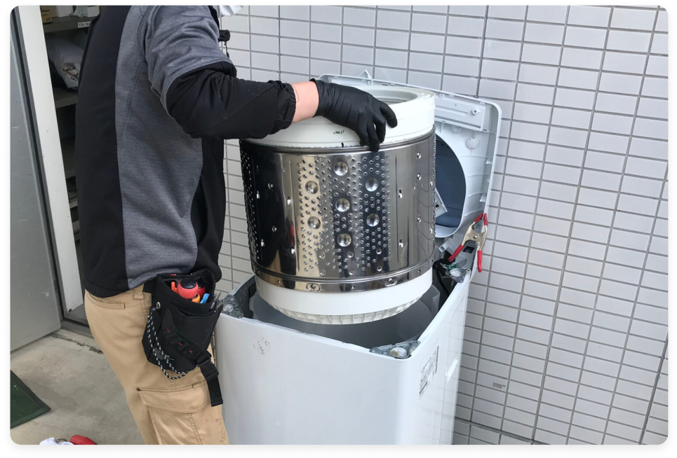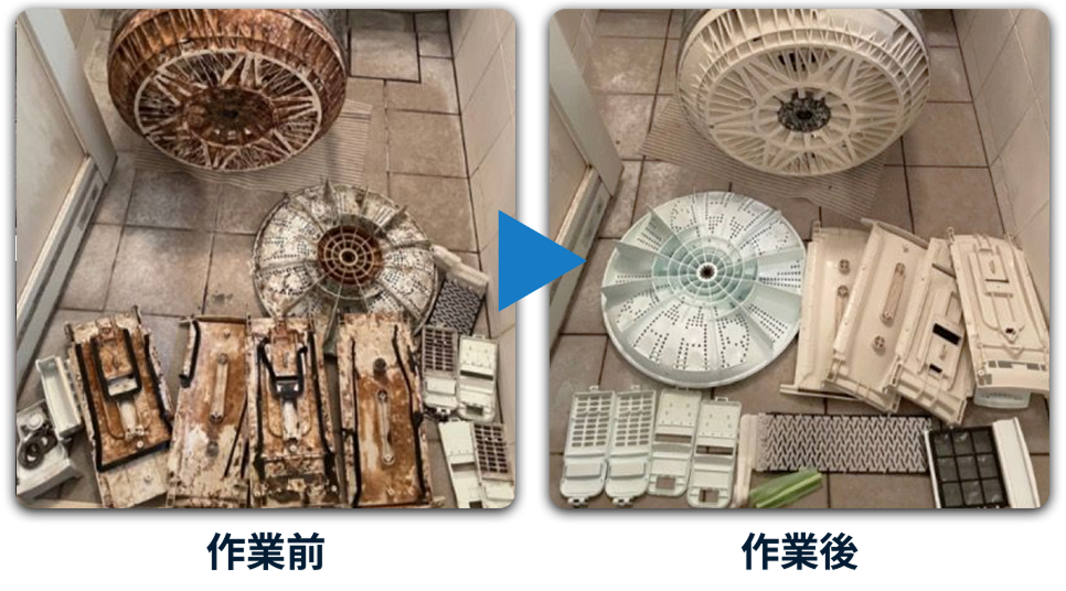 洗濯槽の見えない部分には黒カビが潜んでいることも。ニオイや洗濯物の黒い汚れが気になる方におすすめ。分解洗浄で洗濯槽をすっきり清潔にします。